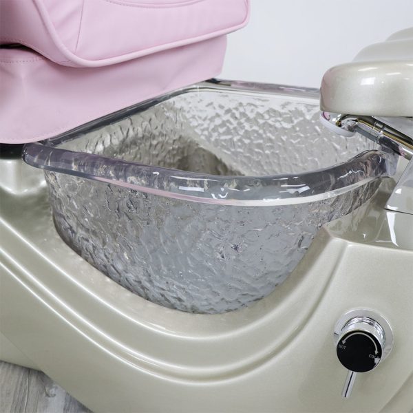 - Stunning LED Spa Bowl: Clear glass bowl illuminated with 7 rotating LED color options, adding a modern, calming effect to each service.