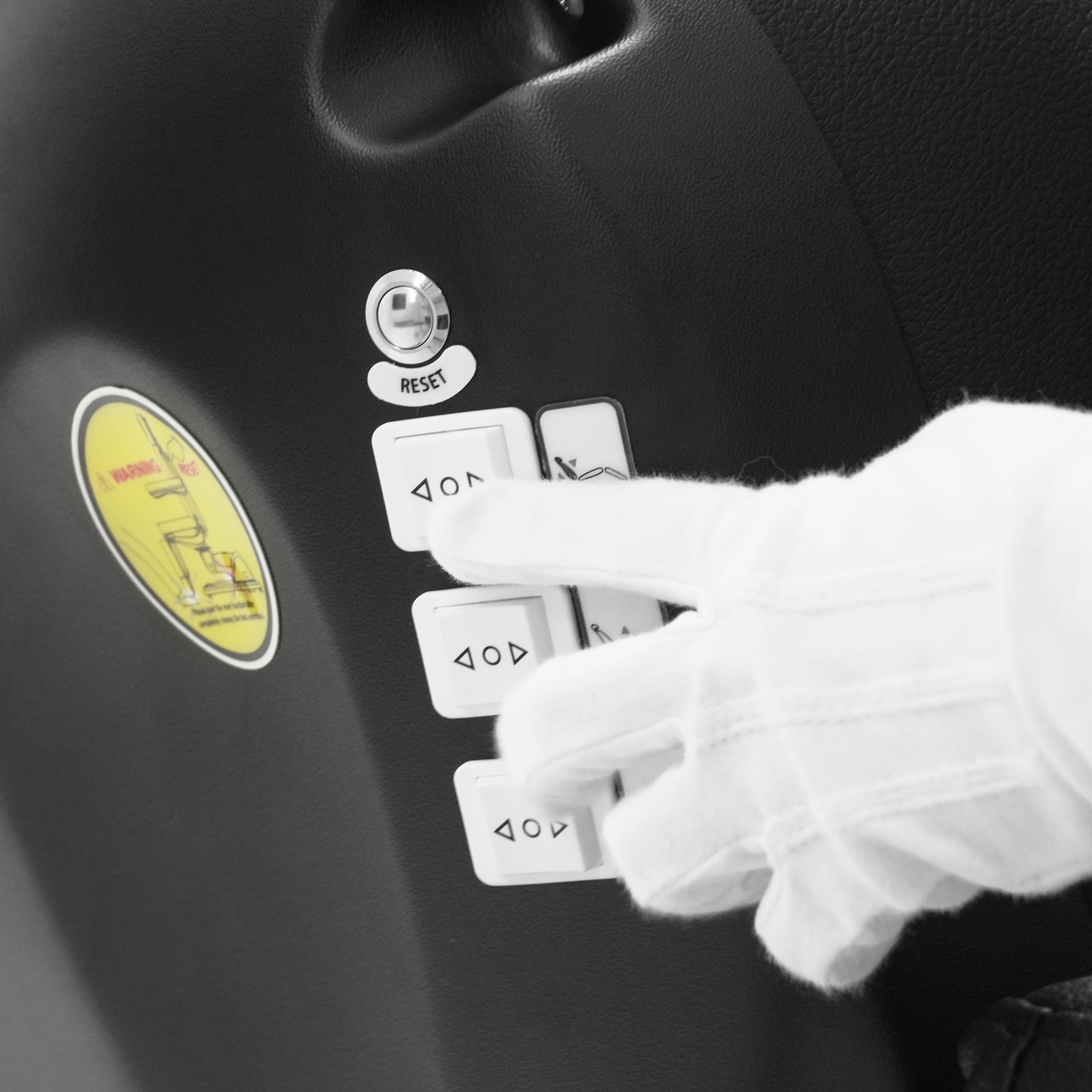- A convenient reset button quickly returns the table to its default lowest height and upright position, allowing for seamless client transitions.