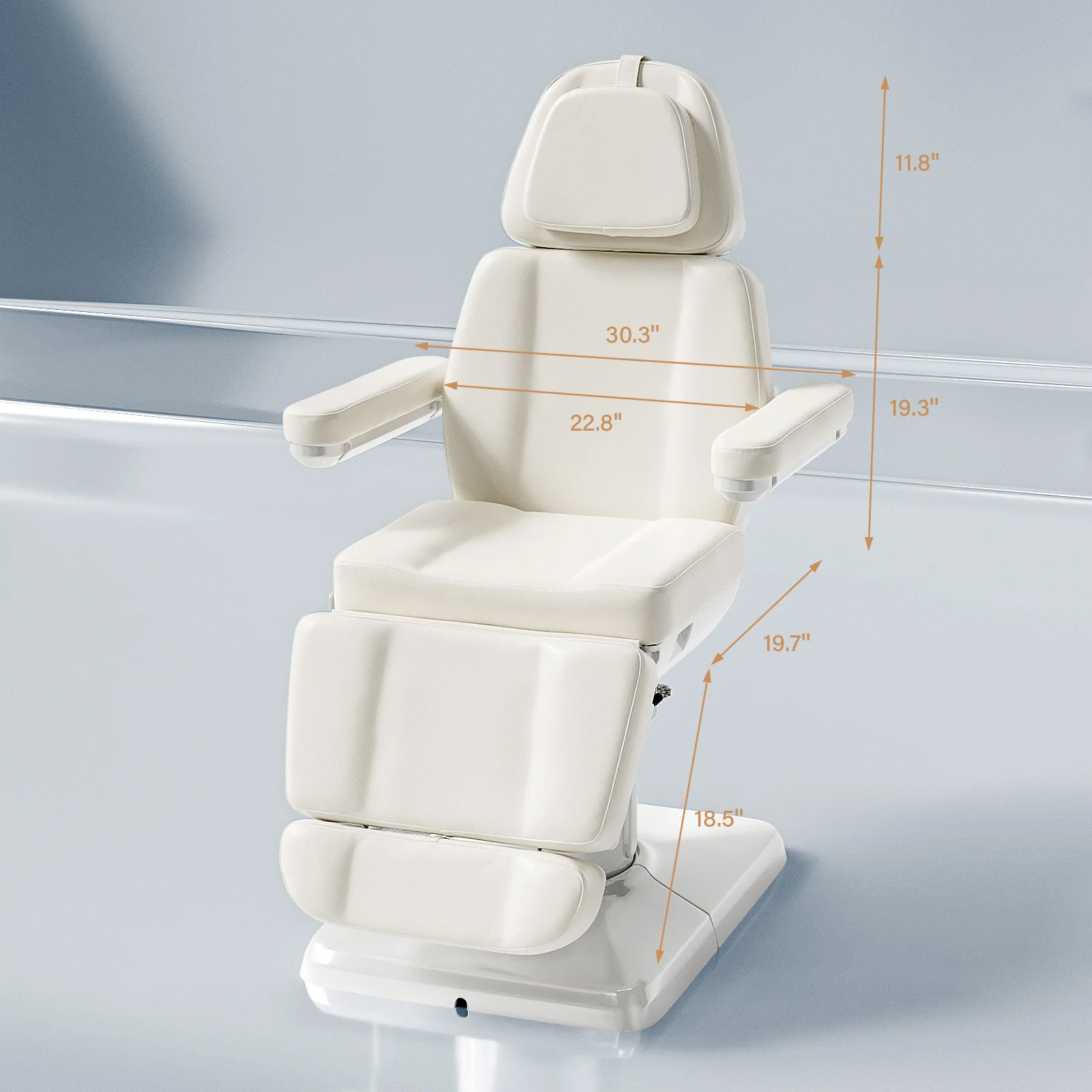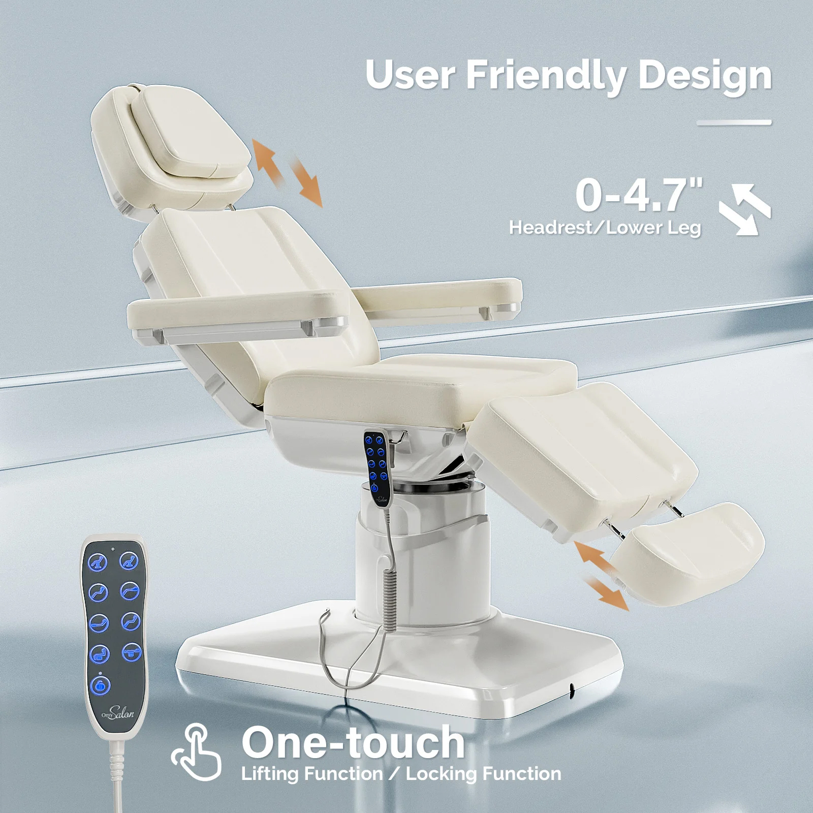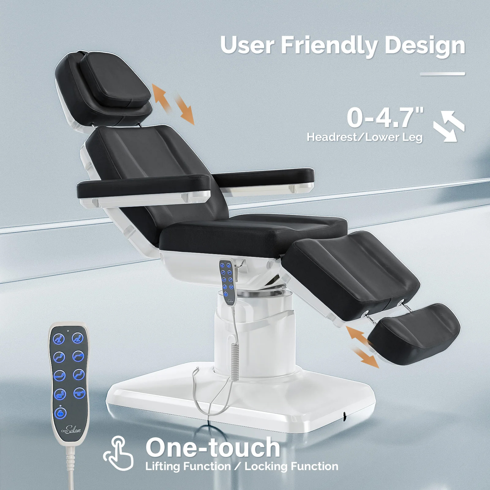 - Includes removable armrests that rotate 180°, ensuring easy access and flexibility during treatments.
