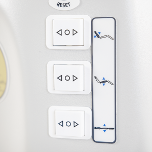 - A lock button secures all motor movements with a press-and-hold function for added safety and stability.